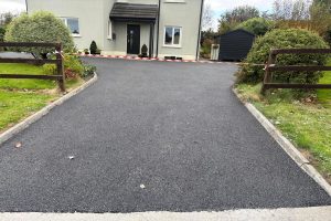 We’ve just completed a new driveway in Carriganlish, Co. Limerick, using hot industrial bitumen tar and chip with a dark stone finish. The project included