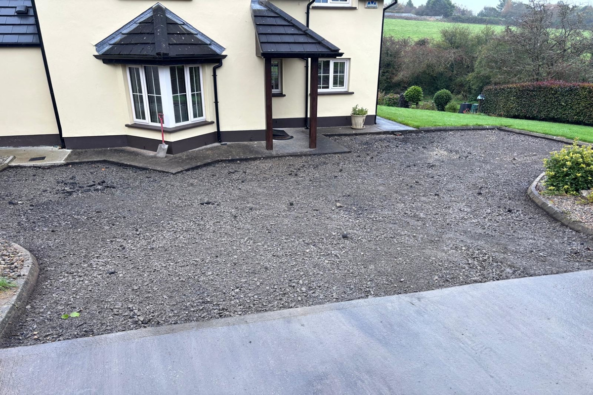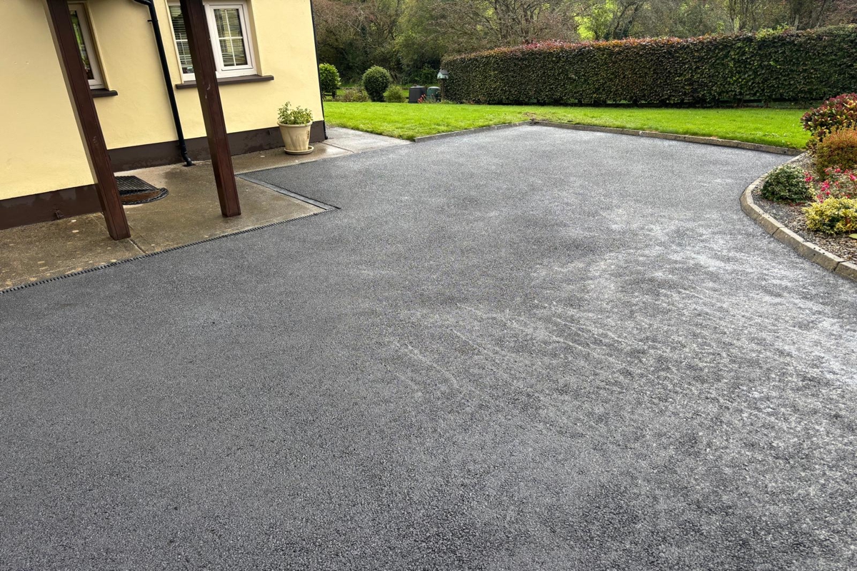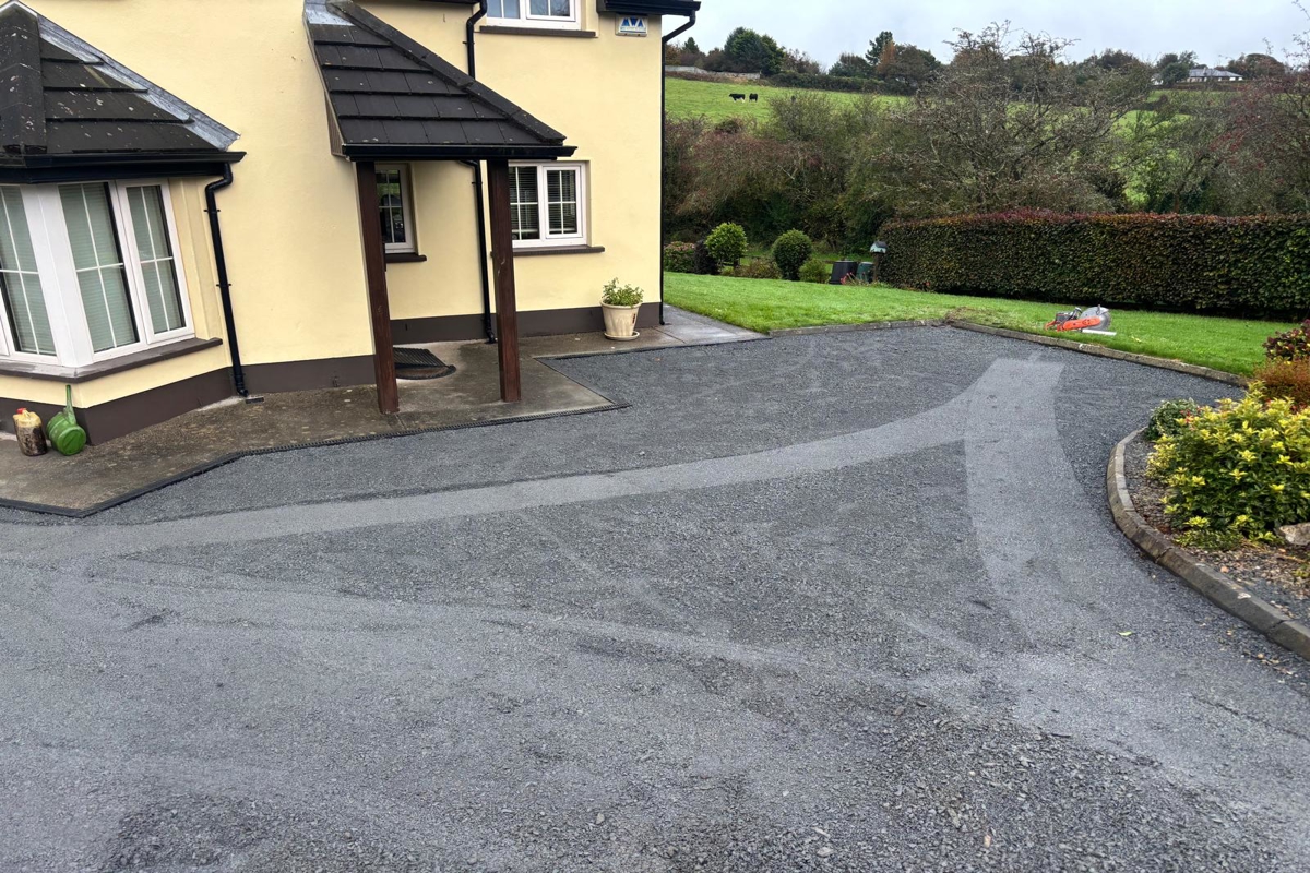 Elevate your home’s approach with a new driveway installation such as this one in Ballina, Co. Clare: featuring a robust new drainage system for efficient water management, a solid new subbase for stability, and a premium SMA heavy-duty tarmac surface for smooth, long-lasting performance that handles heavy use with ease.