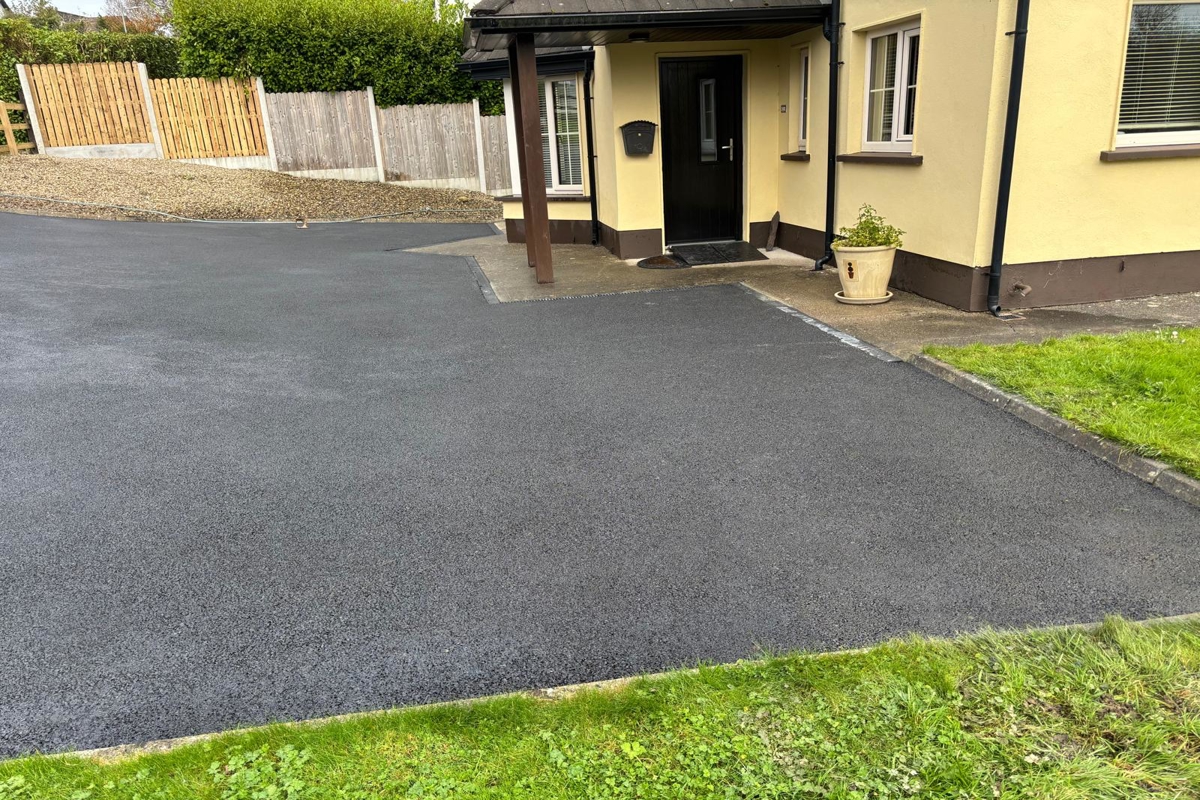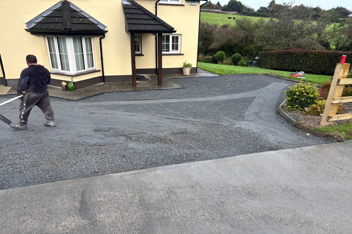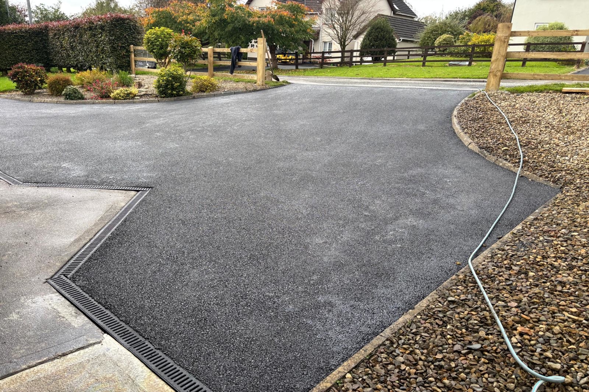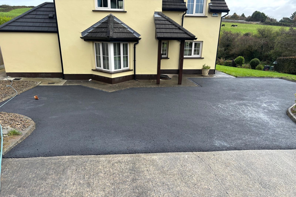 Elevate your home’s approach with a new driveway installation such as this one in Ballina, Co. Clare: featuring a robust new drainage system for efficient water management, a solid new subbase for stability, and a premium SMA heavy-duty tarmac surface for smooth, long-lasting performance that handles heavy use with ease.